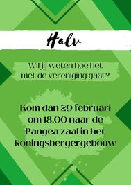 We willen je graag uitnodigen voor de Halfjaarlijkse Algemene Ledenvergadering (HALV) van Van Slag. Deze vergadering zal plaatsvinden op donderdag 29 februari om 18:00, met inloop vanaf 17:45. De HALV zal plaatsvinden in de Pangeazaal van het Victor J. Koningsbergergebouw op het Utrecht Science Park. Het is niet nodig om je in te schrijven via de website, je kunt de vergadering gewoon bijwonen!