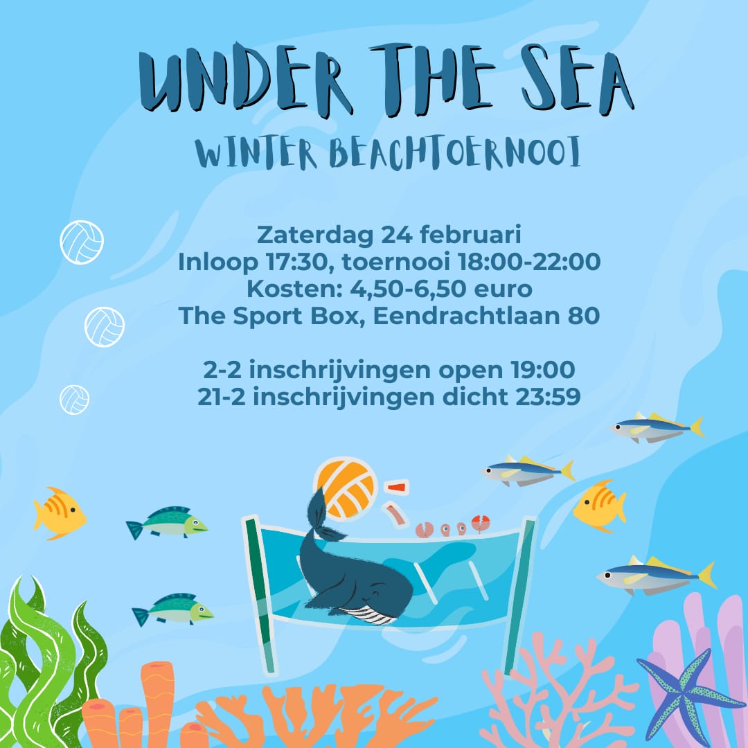 Altijd al eens willen volleyballen onderwater? Wij ook, maar dat kan natuurlijk niet. Gelukkig hebben wij een heel leuk alternatief: het winterbeachvolleybaltoernooi met als thema ‘Under the Sea’! Dompel je onder in een avond vol gezelligheid en zeespektakel en kom met ons mee beachen op zaterdag 24 februari.