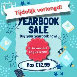 Wegens succes is de verkoop verlengt! Koop nu je jaarboek voor 25 juni 17:00 uur. Daarna gaan de inschrijvingen écht dicht en mis je de kans op dit legendarische boek vol mooie, gênante en onvergetelijke momenten.